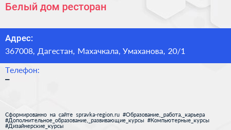 Белый дом, ресторан по адресу 367008, Дагестан, Махачкала, Умаханова, 20/1 в дальнейшем Организация, размещена в следующих категориях: