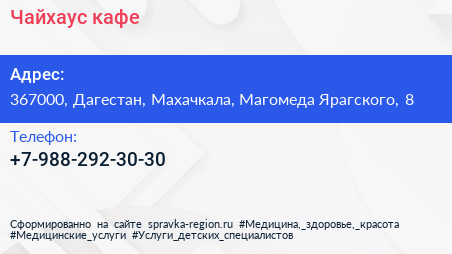 Чайхаус, кафе по адресу 367000, Дагестан, Махачкала, Магомеда Ярагского, 8 в дальнейшем Организация, размещена в следующих категориях: