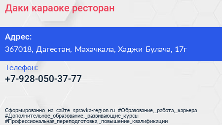 Даки, караоке-ресторан по адресу 367018, Дагестан, Махачкала, Хаджи Булача, 17г в дальнейшем Организация, размещена в следующих категориях: