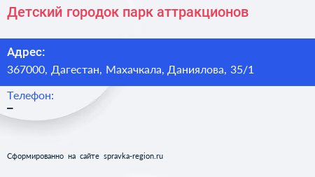Детский городок, парк аттракционов по адресу 367000, Дагестан, Махачкала, Даниялова, 35/1 в дальнейшем Организация, размещена в следующих категориях: