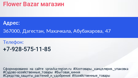 Flower Bazar, магазин по адресу 367000, Дагестан, Махачкала, Абубакарова, 47 в дальнейшем Организация, размещена в следующих категориях: