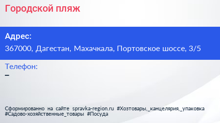 Городской, пляж по адресу 367000, Дагестан, Махачкала, Портовское шоссе, 3/5 в дальнейшем Организация, размещена в следующих категориях: