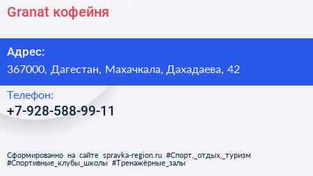 Granat, кофейня по адресу 367000, Дагестан, Махачкала, Дахадаева, 42 в дальнейшем Организация, размещена в следующих категориях: