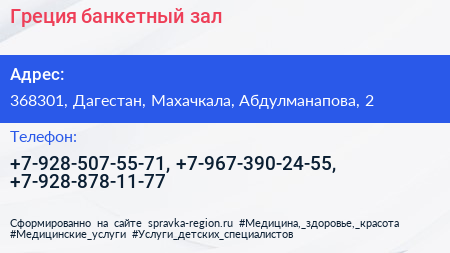 Греция, банкетный зал по адресу 368301, Дагестан, Махачкала, Абдулманапова, 2 в дальнейшем Организация, размещена в следующих категориях: