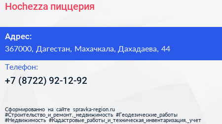 Hochezza, пиццерия по адресу 367000, Дагестан, Махачкала, Дахадаева, 44 в дальнейшем Организация, размещена в следующих категориях:
