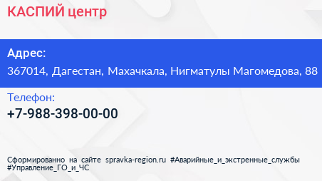КАСПИЙ, центр по адресу 367014, Дагестан, Махачкала, Нигматулы Магомедова, 88 в дальнейшем Организация, размещена в следующих категориях: