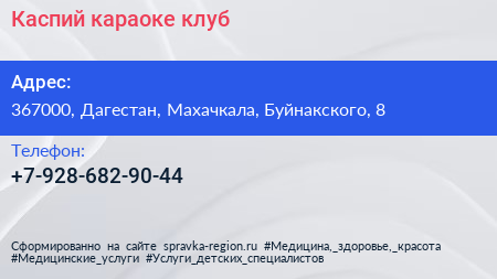 Каспий, караоке-клуб по адресу 367000, Дагестан, Махачкала, Буйнакского, 8 в дальнейшем Организация, размещена в следующих категориях: