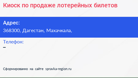 Киоск по продаже лотерейных билетов по адресу 368300, Дагестан, Махачкала, в дальнейшем Организация, размещена в следующих категориях: