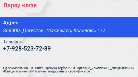 Ларзу, кафе по адресу 368300, Дагестан, Махачкала, Халилова, 1/2 в дальнейшем Организация, размещена в следующих категориях: