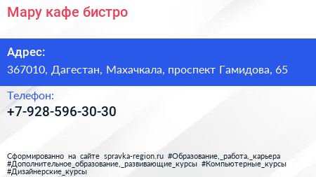 Мару, кафе-бистро по адресу 367010, Дагестан, Махачкала, проспект Гамидова, 65 в дальнейшем Организация, размещена в следующих категориях: