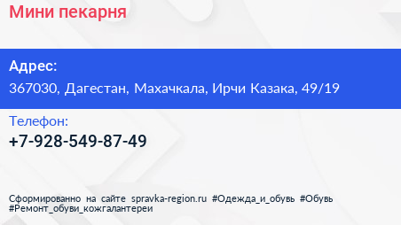 Мини-пекарня по адресу 367030, Дагестан, Махачкала, Ирчи Казака, 49/19 в дальнейшем Организация, размещена в следующих категориях:
