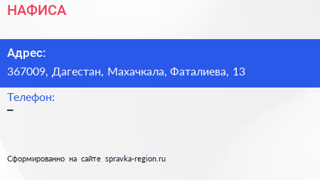 НАФИСА по адресу 367009, Дагестан, Махачкала, Фаталиева, 13 в дальнейшем Организация, размещена в следующих категориях:
