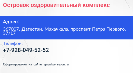 Островок, оздоровительный комплекс по адресу 367007, Дагестан, Махачкала, проспект Петра Первого, 37/17 в дальнейшем Организация, размещена в следующих категориях: