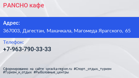 PANCHO, кафе по адресу 367003, Дагестан, Махачкала, Магомеда Ярагского, 65 в дальнейшем Организация, размещена в следующих категориях: