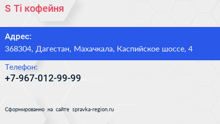 S.Ti, кофейня по адресу 368304, Дагестан, Махачкала, Каспийское шоссе, 4 в дальнейшем Организация, размещена в следующих категориях: