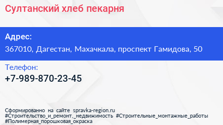 Султанский хлеб, пекарня по адресу 367010, Дагестан, Махачкала, проспект Гамидова, 50 в дальнейшем Организация, размещена в следующих категориях: