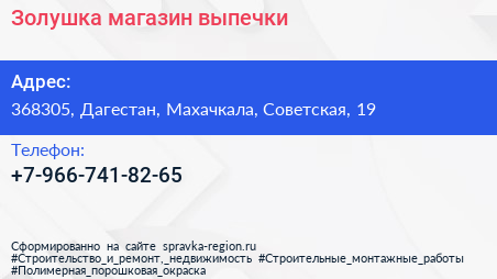 Золушка, магазин выпечки по адресу 368305, Дагестан, Махачкала, Советская, 19 в дальнейшем Организация, размещена в следующих категориях:
