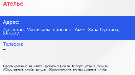 Ателье по адресу Дагестан, Махачкала, проспект Амет-Хана Султана, 35Б/77 в дальнейшем Организация, размещена в следующих категориях: