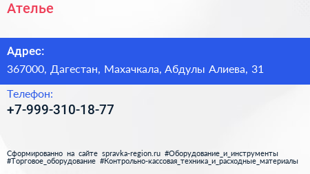 Ателье по адресу 367000, Дагестан, Махачкала, Абдулы Алиева, 31 в дальнейшем Организация, размещена в следующих категориях: