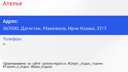 Ателье по адресу 367030, Дагестан, Махачкала, Ирчи Казака, 37/7 в дальнейшем Организация, размещена в следующих категориях: