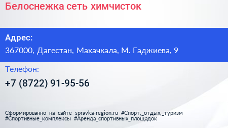 Белоснежка, сеть химчисток по адресу 367000, Дагестан, Махачкала, М. Гаджиева, 9 в дальнейшем Организация, размещена в следующих категориях: