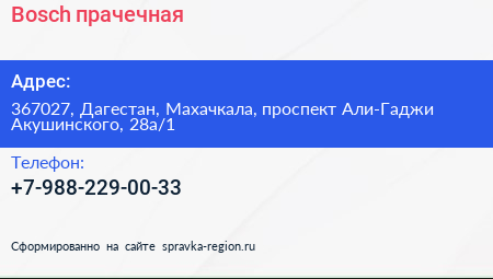 Bosch, прачечная по адресу 367027, Дагестан, Махачкала, проспект Али-Гаджи Акушинского, 28а/1 в дальнейшем Организация, размещена в следующих категориях: