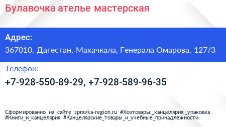 Булавочка, ателье-мастерская по адресу 367010, Дагестан, Махачкала, Генерала Омарова, 127/3 в дальнейшем Организация, размещена в следующих категориях: