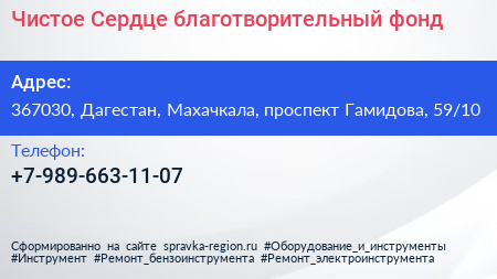 Чистое Сердце, благотворительный фонд по адресу 367030, Дагестан, Махачкала, проспект Гамидова, 59/10 в дальнейшем Организация, размещена в следующих категориях: