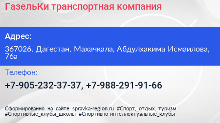 ГазельКи, транспортная компания по адресу 367026, Дагестан, Махачкала, Абдулхакима Исмаилова, 76а в дальнейшем Организация, размещена в следующих категориях: