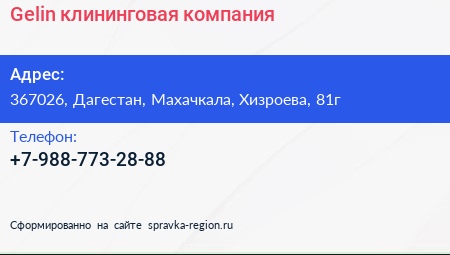 Gelin, клининговая компания по адресу 367026, Дагестан, Махачкала, Хизроева, 81г в дальнейшем Организация, размещена в следующих категориях:
