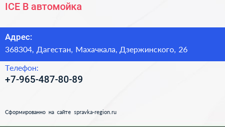 ICE.B, автомойка по адресу 368304, Дагестан, Махачкала, Дзержинского, 26 в дальнейшем Организация, размещена в следующих категориях: