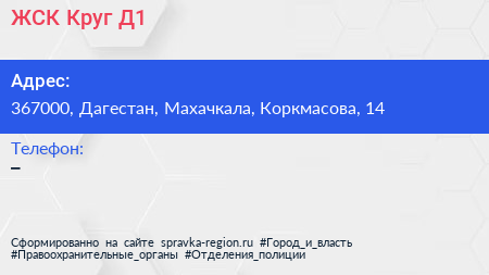 ЖСК Круг Д1 по адресу 367000, Дагестан, Махачкала, Коркмасова, 14 в дальнейшем Организация, размещена в следующих категориях: