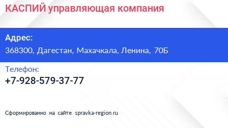 КАСПИЙ, управляющая компания по адресу 368300, Дагестан, Махачкала, Ленина, 70Б в дальнейшем Организация, размещена в следующих категориях: