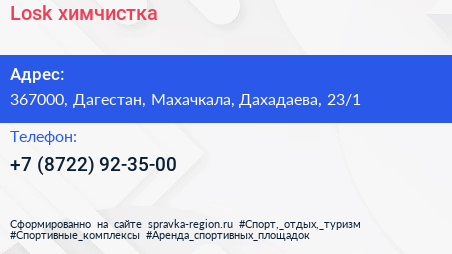 Losk, химчистка по адресу 367000, Дагестан, Махачкала, Дахадаева, 23/1 в дальнейшем Организация, размещена в следующих категориях: