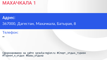 МАХАЧКАЛА-1 по адресу 367000, Дагестан, Махачкала, Батырая, 8 в дальнейшем Организация, размещена в следующих категориях: