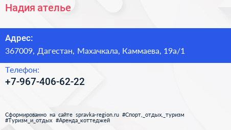 Надия, ателье по адресу 367009, Дагестан, Махачкала, Каммаева, 19а/1 в дальнейшем Организация, размещена в следующих категориях: