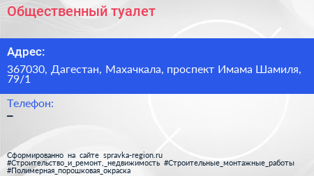 Общественный туалет по адресу 367030, Дагестан, Махачкала, проспект Имама Шамиля, 79/1 в дальнейшем Организация, размещена в следующих категориях: