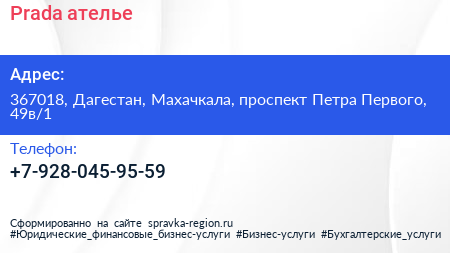 Prada, ателье по адресу 367018, Дагестан, Махачкала, проспект Петра Первого, 49в/1 в дальнейшем Организация, размещена в следующих категориях: