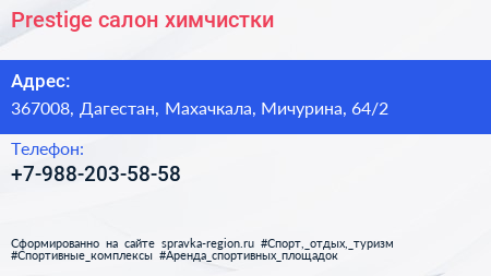 Prestige, салон химчистки по адресу 367008, Дагестан, Махачкала, Мичурина, 64/2 в дальнейшем Организация, размещена в следующих категориях: