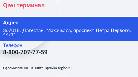 Qiwi, терминал по адресу 367018, Дагестан, Махачкала, проспект Петра Первого, 44/11 в дальнейшем Организация, размещена в следующих категориях: