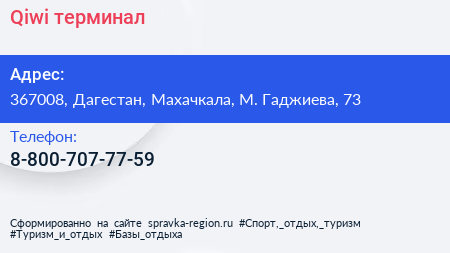 Qiwi, терминал по адресу 367008, Дагестан, Махачкала, М. Гаджиева, 73 в дальнейшем Организация, размещена в следующих категориях: