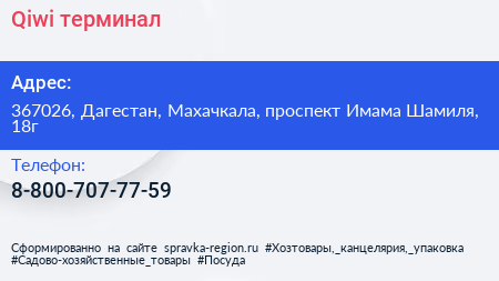Qiwi, терминал по адресу 367026, Дагестан, Махачкала, проспект Имама Шамиля, 18г в дальнейшем Организация, размещена в следующих категориях: