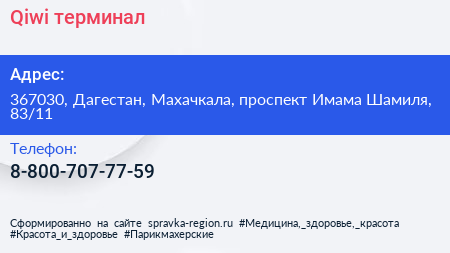 Qiwi, терминал по адресу 367030, Дагестан, Махачкала, проспект Имама Шамиля, 83/11 в дальнейшем Организация, размещена в следующих категориях: