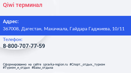 Qiwi, терминал по адресу 367008, Дагестан, Махачкала, Гайдара Гаджиева, 10/11 в дальнейшем Организация, размещена в следующих категориях: