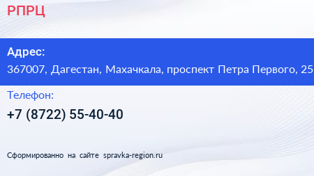 РПРЦ по адресу 367007, Дагестан, Махачкала, проспект Петра Первого, 25 в дальнейшем Организация, размещена в следующих категориях: