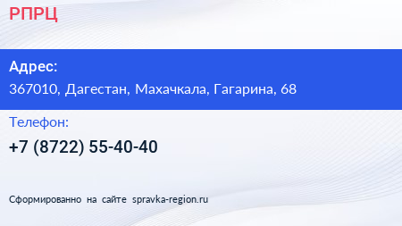 РПРЦ по адресу 367010, Дагестан, Махачкала, Гагарина, 68 в дальнейшем Организация, размещена в следующих категориях: