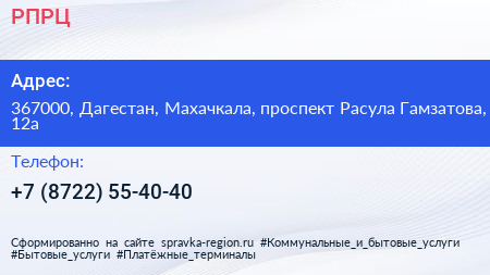 РПРЦ по адресу 367000, Дагестан, Махачкала, проспект Расула Гамзатова, 12а в дальнейшем Организация, размещена в следующих категориях: