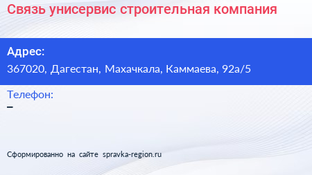 Связь унисервис, строительная компания по адресу 367020, Дагестан, Махачкала, Каммаева, 92а/5 в дальнейшем Организация, размещена в следующих категориях: