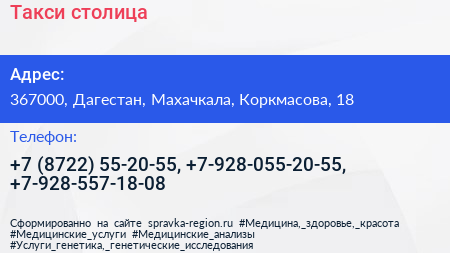 Такси столица по адресу 367000, Дагестан, Махачкала, Коркмасова, 18 в дальнейшем Организация, размещена в следующих категориях: