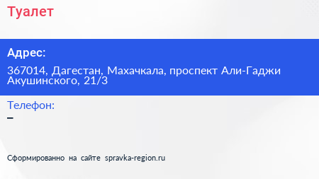 Туалет по адресу 367014, Дагестан, Махачкала, проспект Али-Гаджи Акушинского, 21/3 в дальнейшем Организация, размещена в следующих категориях: